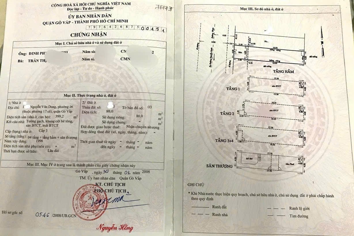 | DT Công nhận: 80 m2 | DT sàn: 300 m2 | ||||||