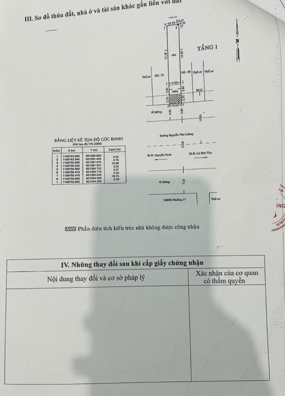 Nhà MT 70 Nguyễn Văn Lượng, Phường 17, Gò Vấp, MT 30m, 3,55x23m, Cn 80,5 m2, trệt 2 lầu, 37tr/tháng, 16,3 tỷ TL