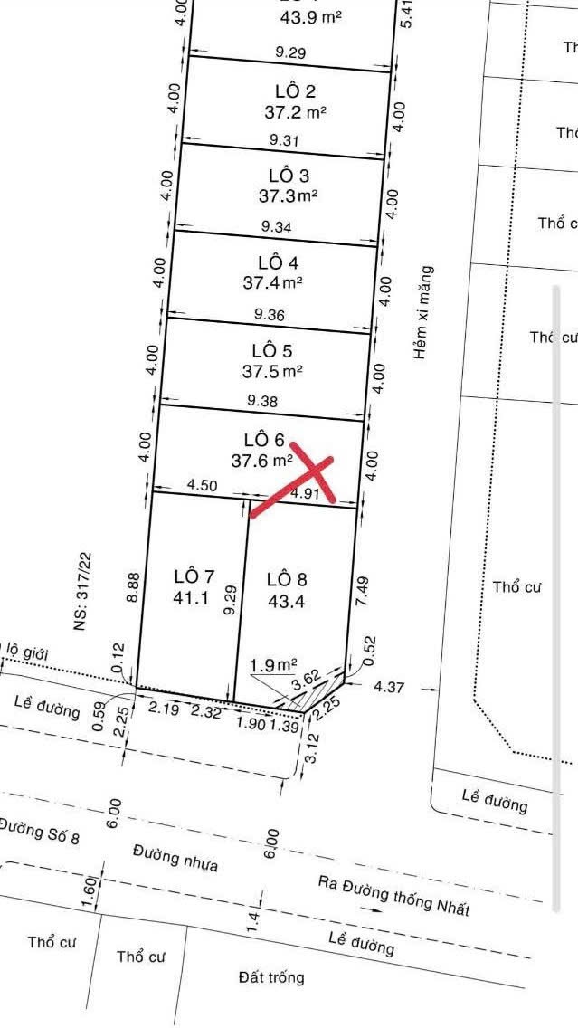 Đất hẻm 317/20/1 Thống Nhất, Phường 11, Gò Vấp, Hẻm 4,5m, 4x9,5m, Cn 37,6 m2, 5,5 tỷ TL