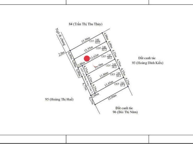 -Mặt tiền: 4m – thửa đất vuông