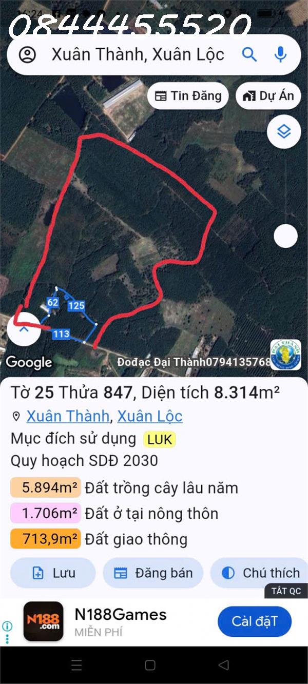 Cần bán đất vườn diện tích rộng 14 hecta (140.000 m²) tại xã Xuân Thành, huyện Xuân Lộc, tỉnh Đồng Nai. Đất nằm ở vị trí đẹp, giao thông thuận lợi, thích hợp để đầu tư, trồng cây lâu năm, chăn nuôi hoặc xây dựng khu nghỉ dưỡng, homestay. phân xào