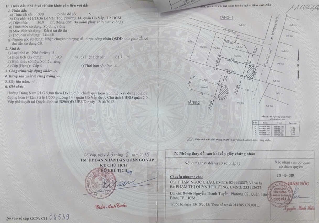 Nhà hẻm 611/13/36 Lê Văn Thọ, Phường 14, Gò Vấp, Hẻm 4m, 3,4x11m, Cn 30,9 m2, trệt 1 lầu, 2PN, 2WC, 4,07 tỷ TL
