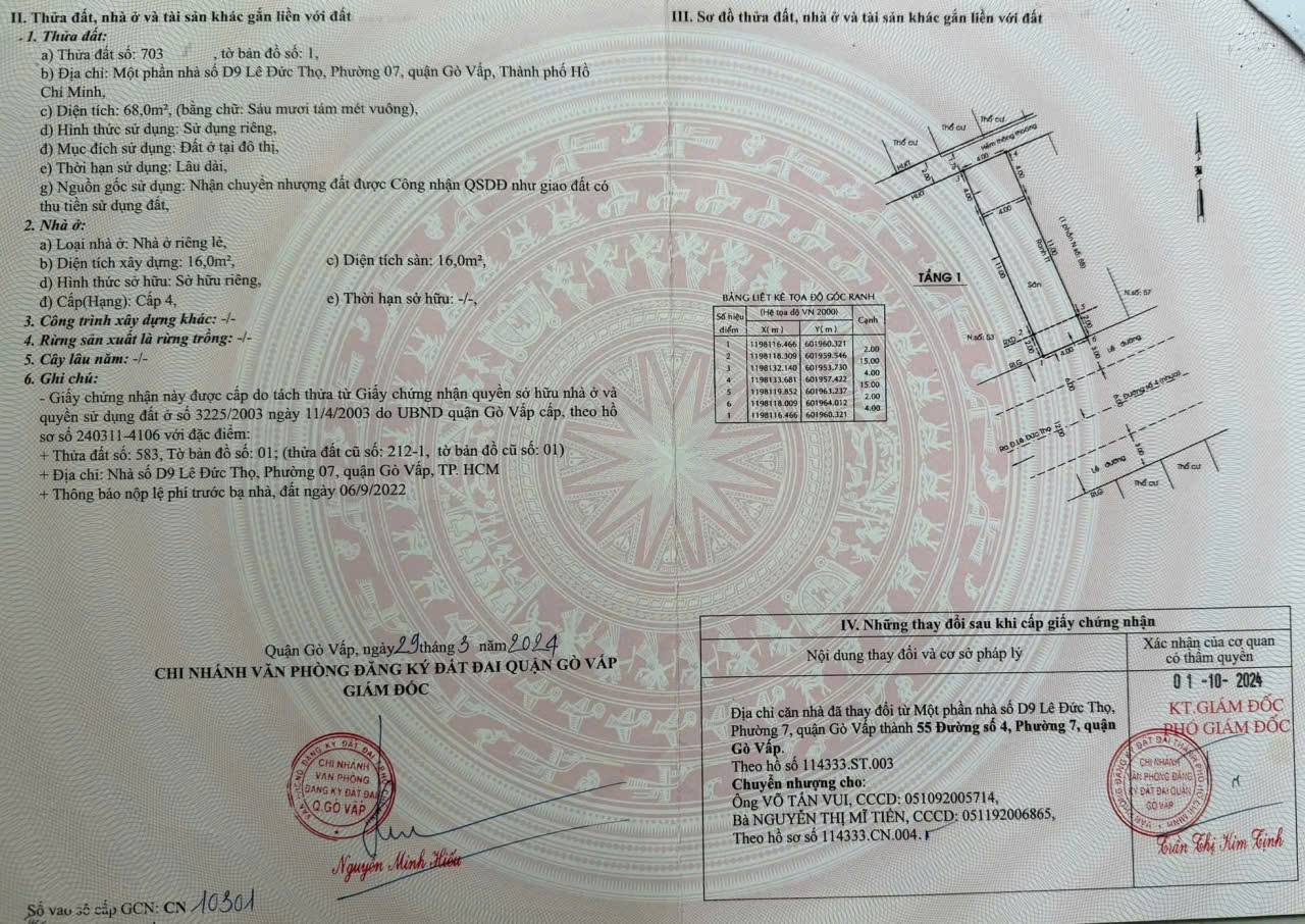Đất 2 MT 55 Đường số 4, Phường 7, Gò Vấp, MT 12m, 4x17m, Cn 68 m2, 9,8 tỷ TL