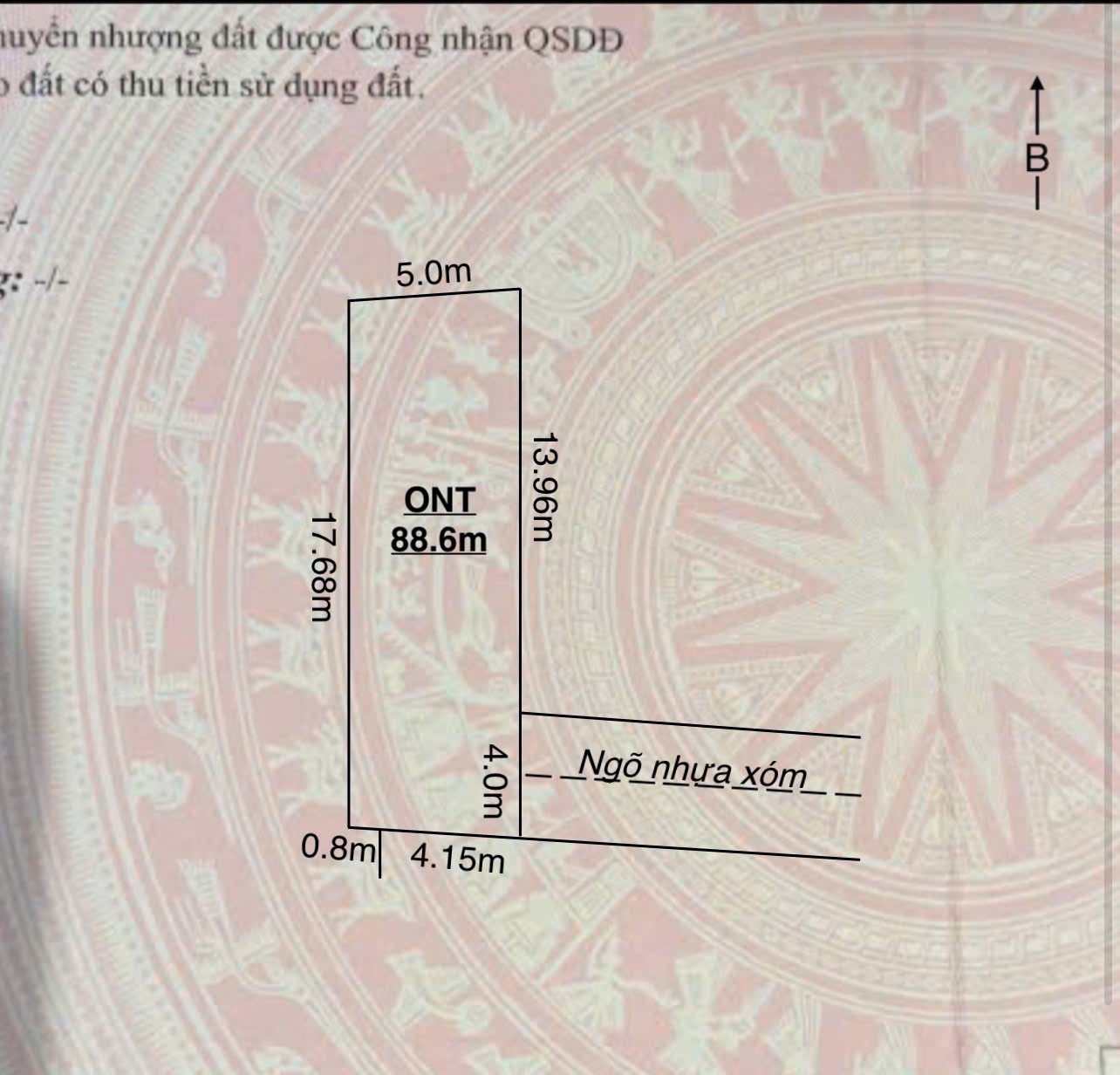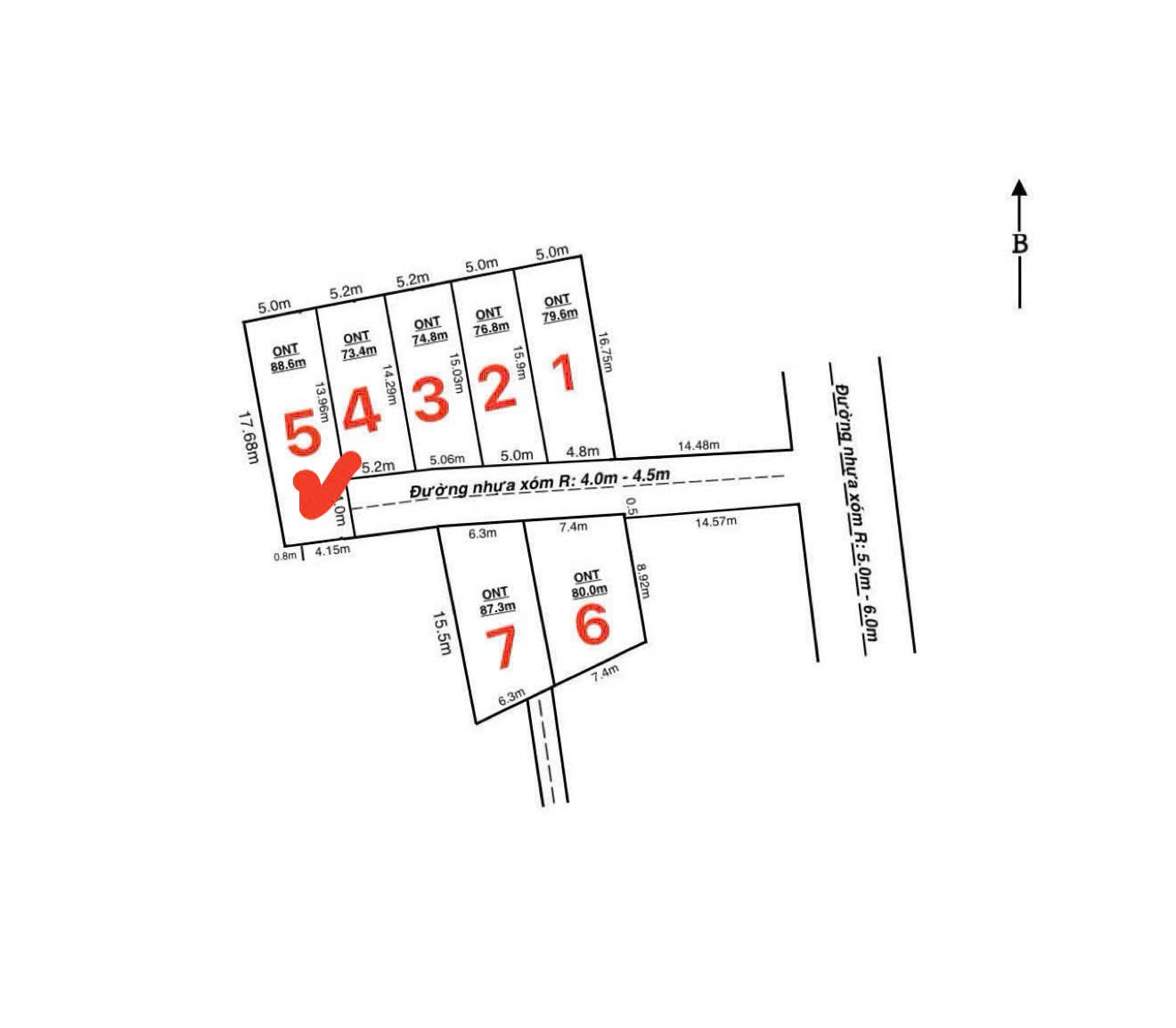 -Mặt tiền: 4,95m, nở hậu