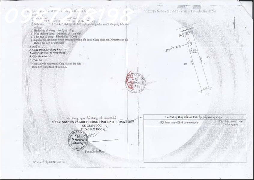 Diện tích: 1.016,4 m² (có 100 m² thổ cư, phần còn lại đất trồng cây lâu năm, lên full thổ cư).