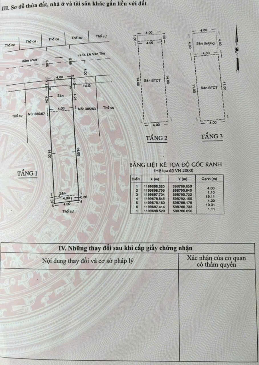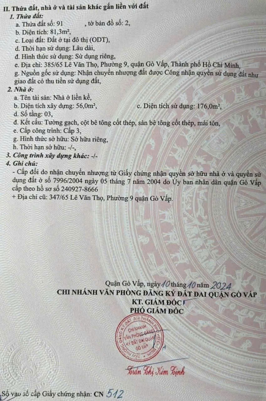 Nhà hẻm 385/65 Lê Văn Thọ, Phường 9, Gò Vấp, Hẻm 6m thông, 4x20,5m, Cn 81,6 m2, trệt 2 lầu, ST, 4PN, 5WC, 10,8 tỷ TL