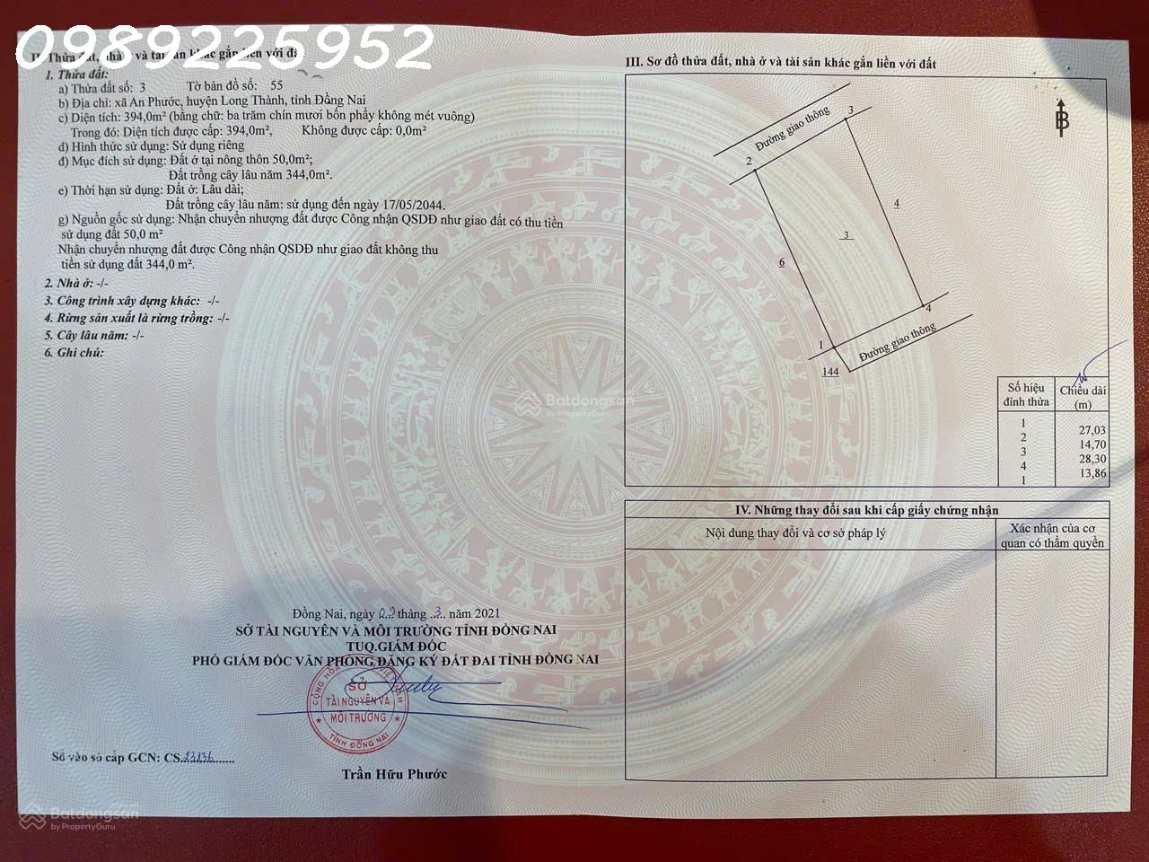 • Diện tích: 394 m² (có 50 m² thổ cư)