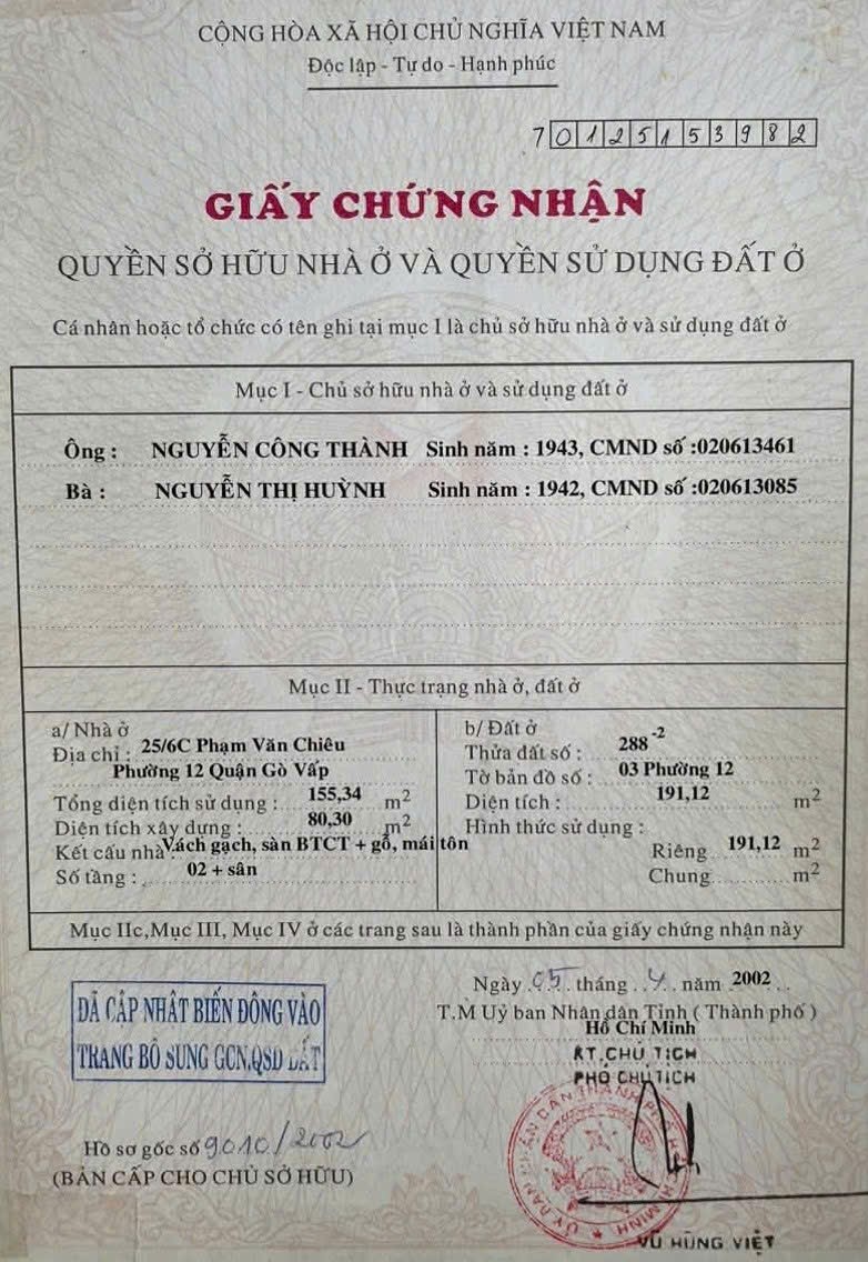 Nhà MT 453 Nguyễn Văn Khối, Phường 8, Gò Vấp, MT 20m, 8,03x27m, Cn 191,1 m2, trệt 1 lầu, 35,5 tỷ TL