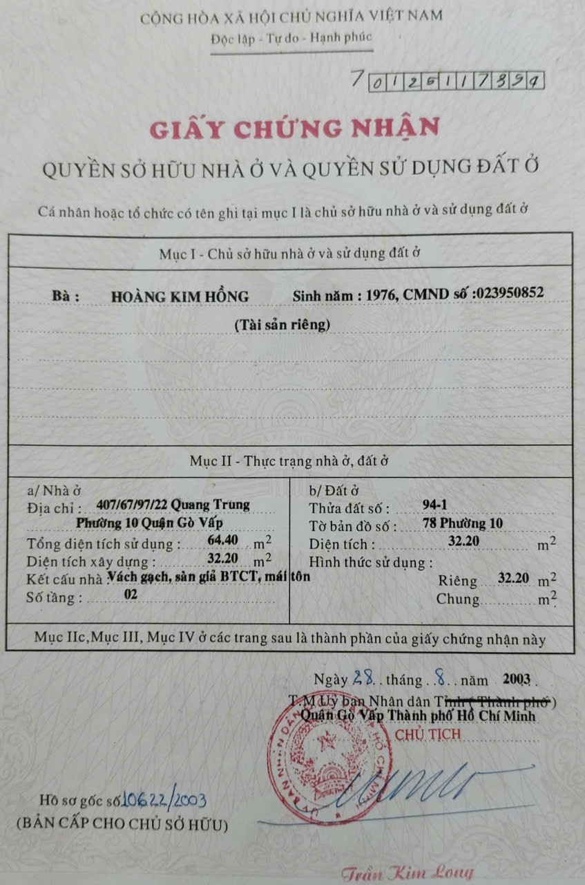 Nhà 2 MT hẻm 417/69/87 Quang Trung, Phường 10, Gò Vấp, Hẻm 3,5m thông, 4 NH 4,05x8m, Cn 32,2 m2, trệt 1 lầu, 3PN, 2WC, Full nội thất, 4,68 tỷ TL