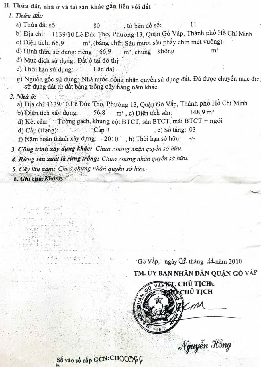 Nhà hẻm 1227/16 Lê Đức Thọ, Phường 13, Gò Vấp, Hẻm 6m, 4x18m, Cn 66,9 m2, trệt 2 lầu, 7,9 tỷ TL