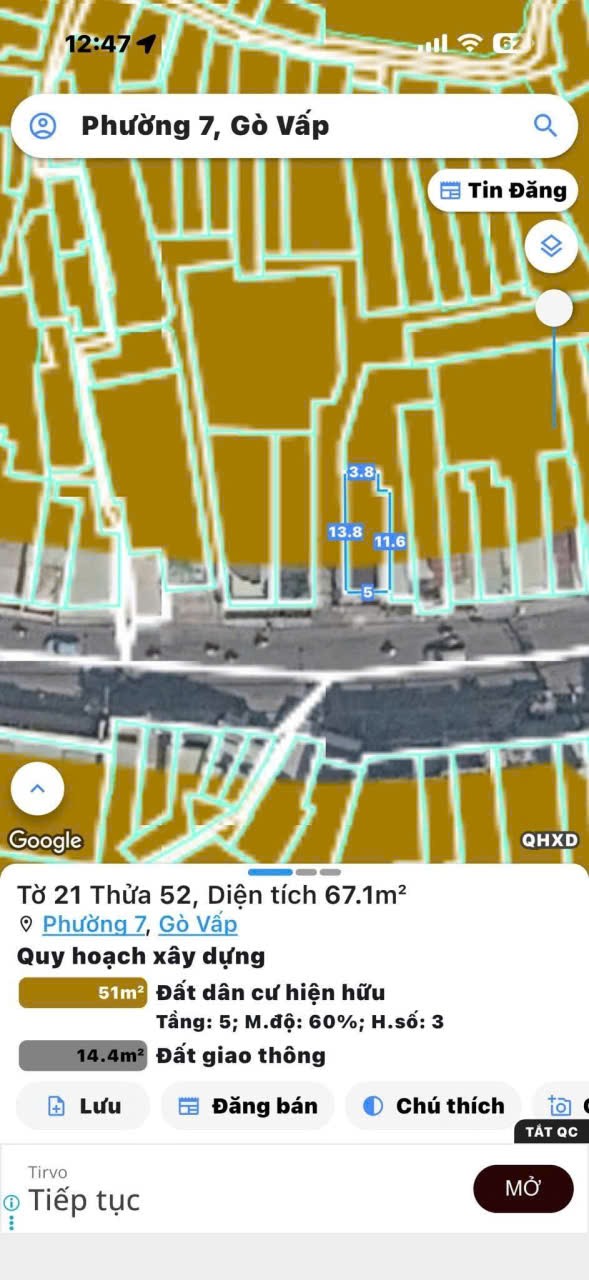 | DT Công nhận: 15.2 m2 | DT sàn: 40.7 m2 | ||||||