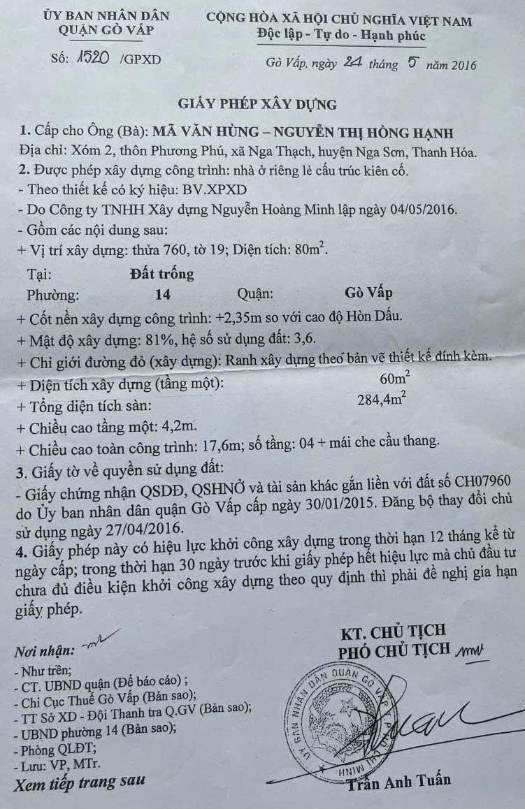 Nhà hẻm 237/33/32N Phạm Văn Chiêu, Phường 14, Gò Vấp, Hẻm 12m thông, 4x20m, Cn 80 m2, trệt 3 lầu, ST, 4PN, 5WC, 10,8 tỷ TL