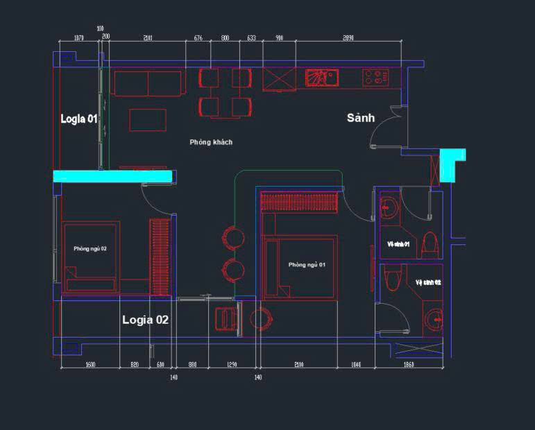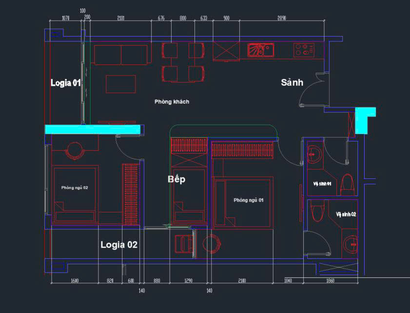 * Căn hộ 2pn 2 logia, có thể thiết kế thành 2n+1 như ảnh
