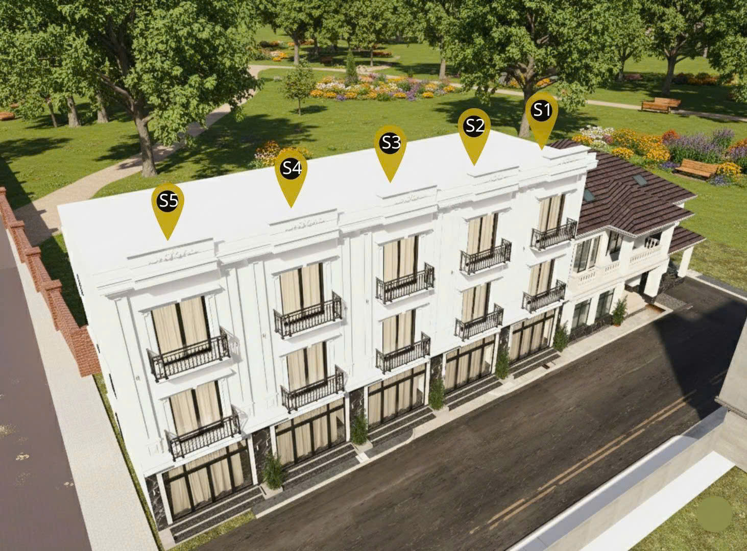 • Diện tích từng căn: từ 42m² – 48m²