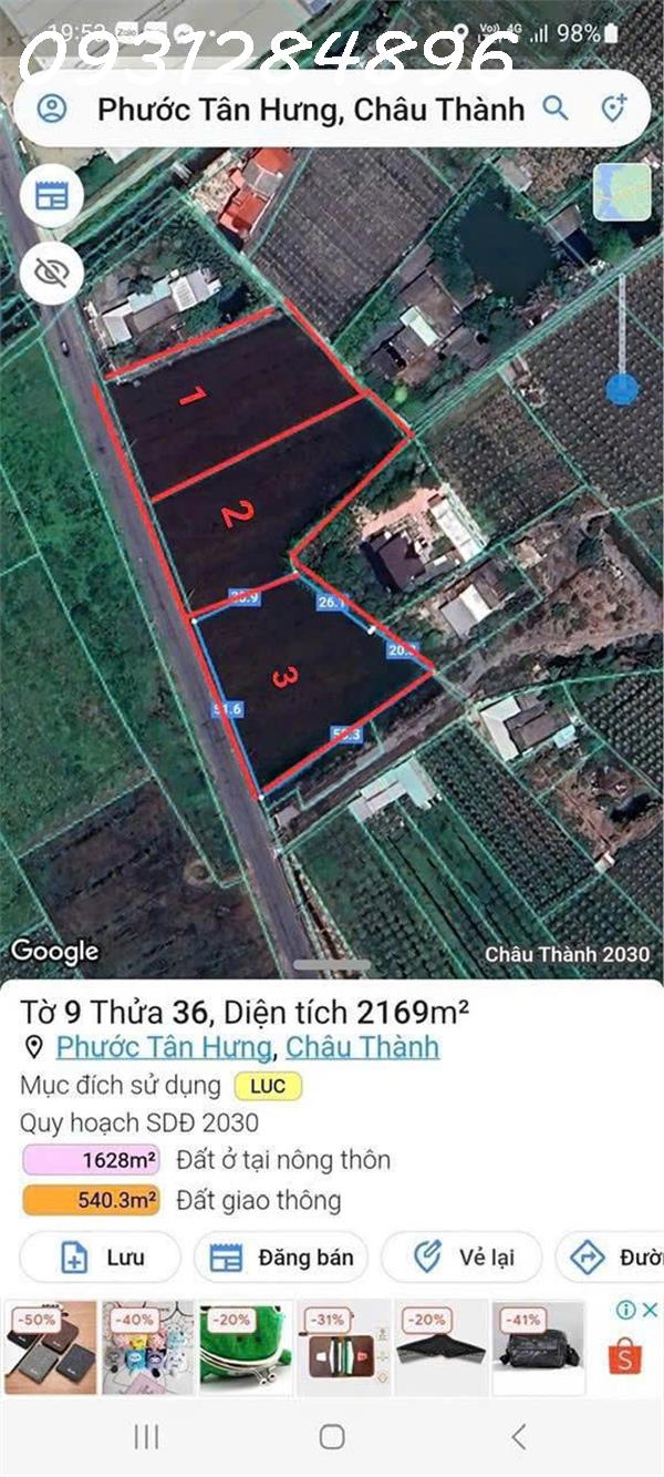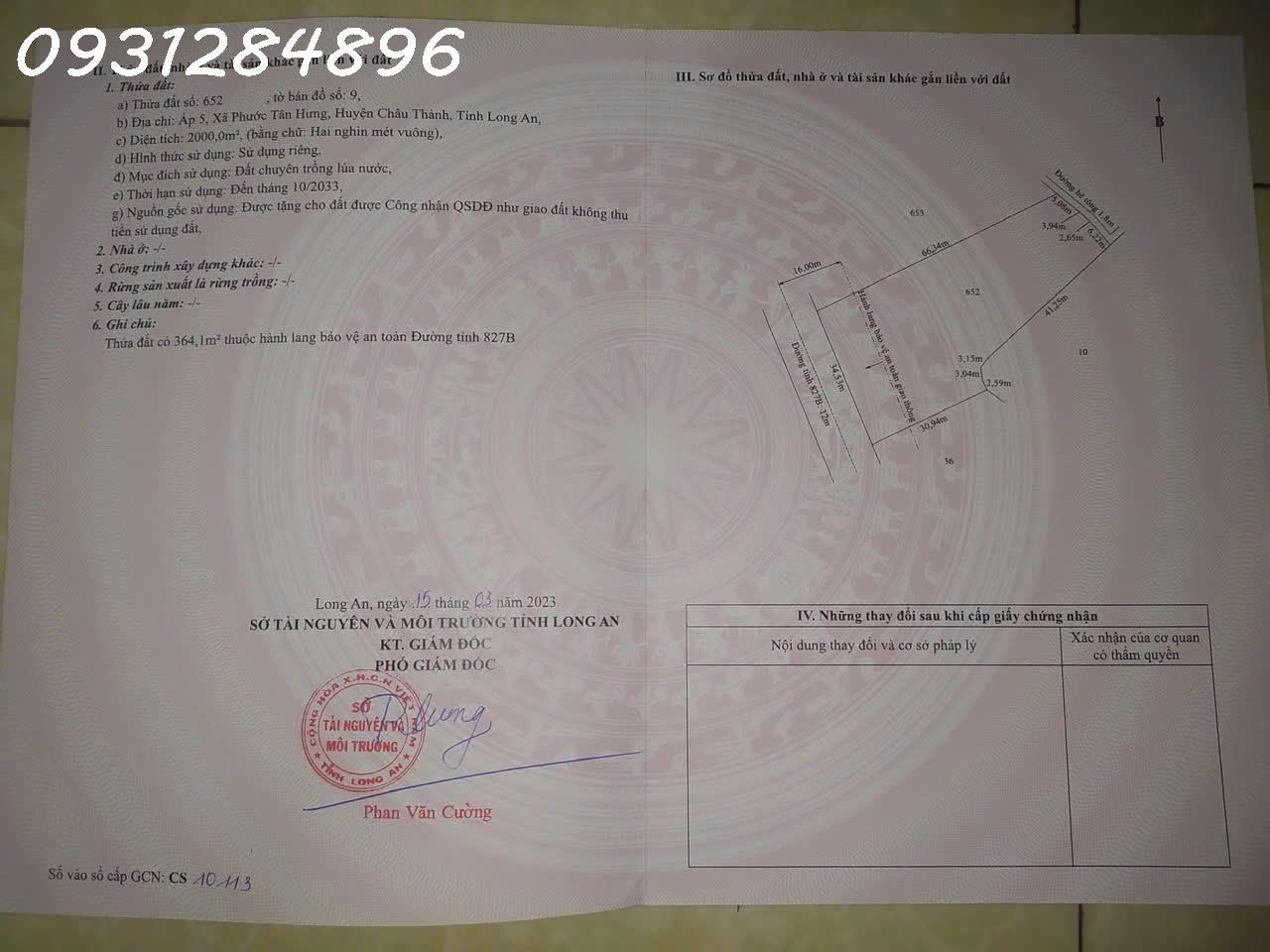 Chính chủ, cần ra lô đất mặt tiền đẹp tỉnh Lộ 827B xã Phước Tân Hưng, huyện Châu Thành Tỉnh Long An, (địa chỉ mới là Xã Tầm Vu, Tỉnh Tây Ninh)