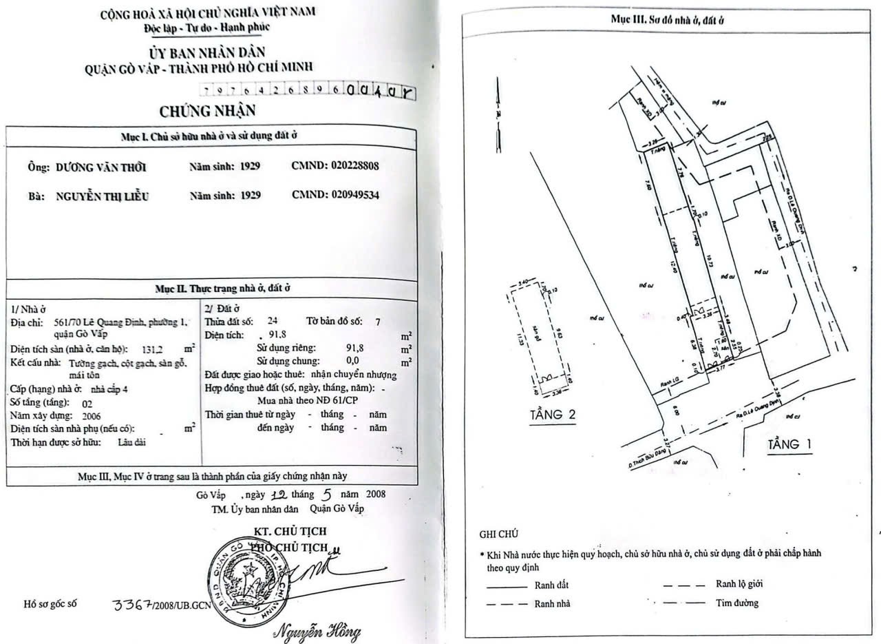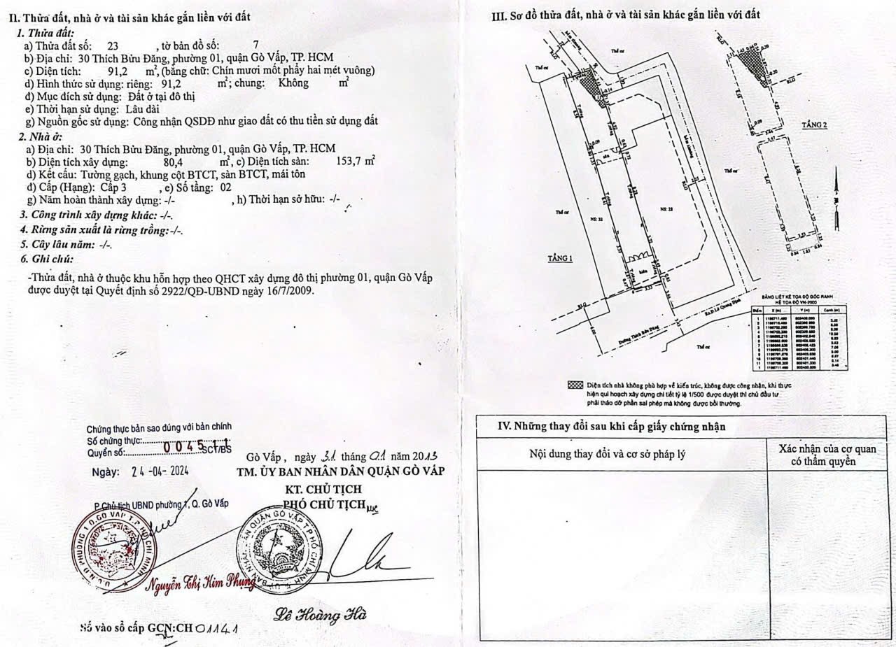 Đất MT 30 32 Thích Bửu Đăng, Phường 1, Gò Vấp, MT 5m, 7,1x26m, Cn 183 m2, 2 sổ hồng, 20 tỷ TL