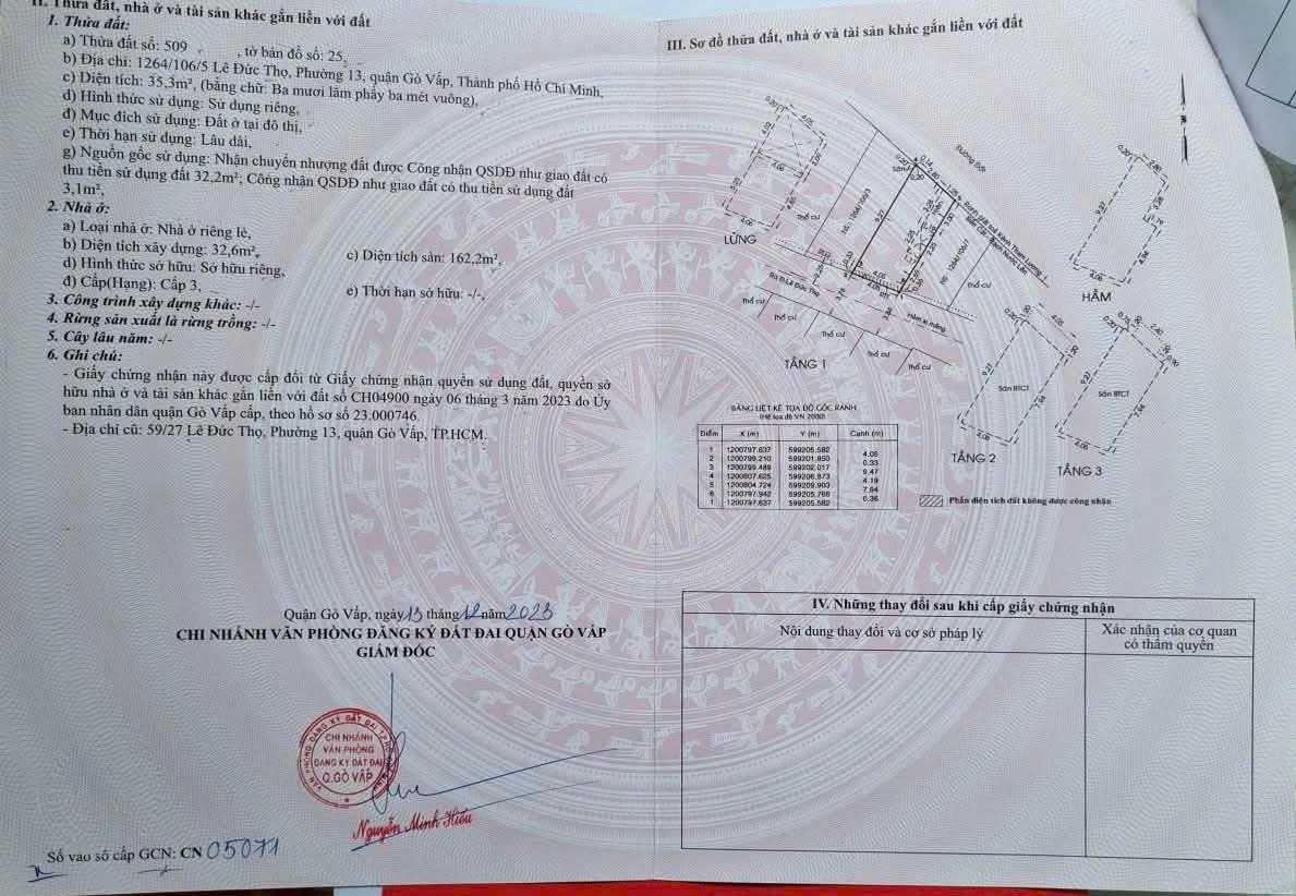 Nhà 2 MT 1264/106/5 Lê Đức Thọ, Phường 13, Gò Vấp, Hẻm 16m thông, 4x9m, Cn 35,3 m2, trệt lửng 2 lầu, ST, 4PN, 4WC, 7,99 tỷ TL