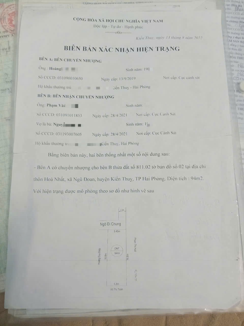 6XX TRIỆU SỞ HỮU LÔ ĐẤT 94M2 TẠI NGŨ ĐOAN KIẾN THỤY- ZALO 0567 222 555 -Diện tích: 94m2 (Nở hậu) -Mặt tiền: 5.45m - Hậu: 5.8m - Chiều sâu: 16.8m -Đường/ngõ: Ngõ bê tông thực tế rộng, ô tô ra vào thuận tiện (Theo hình ảnh hiện trạng) -Vị trí: Thôn Hòa Nhất, xã Ngũ Đoan, huyện Kiến Thụy, TP Hải Phòng -Tiện ích: Khu vực dân cư hiện hữu, gần trục đường liên thôn, không gian thoáng đãng -Pháp lý: Giấy chứng nhận quyền sử dụng đất chính chủ -Giá: 6xx triệu (Liên hệ để nhận báo giá chi tiết) -Tiềm năng/đầu tư: Phù hợp xây dựng nhà ở định cư hoặc đầu tư tích lũy tài sản phân khúc giá rẻ -Liên hệ xem đất và kiểm tra pháp lý trực tiếp -NHÀ ĐẤT ANH MINH 782 Phạm Văn Đồng, Dương Kinh, Hải Phòng -Trọng Điểm: Dương Kinh • Đồ Sơn • Kiến Thụy -SĐT/ZALO: 0567 222 555 -Thông tin mang tính tham khảo tại thời điểm đăng. Xin vui lòng kiểm tra thực tế. -#bds_hai_phong#dau_tu_bat_dong_san#ngu_doan#kien_thuy#dat_nen_gia_re
