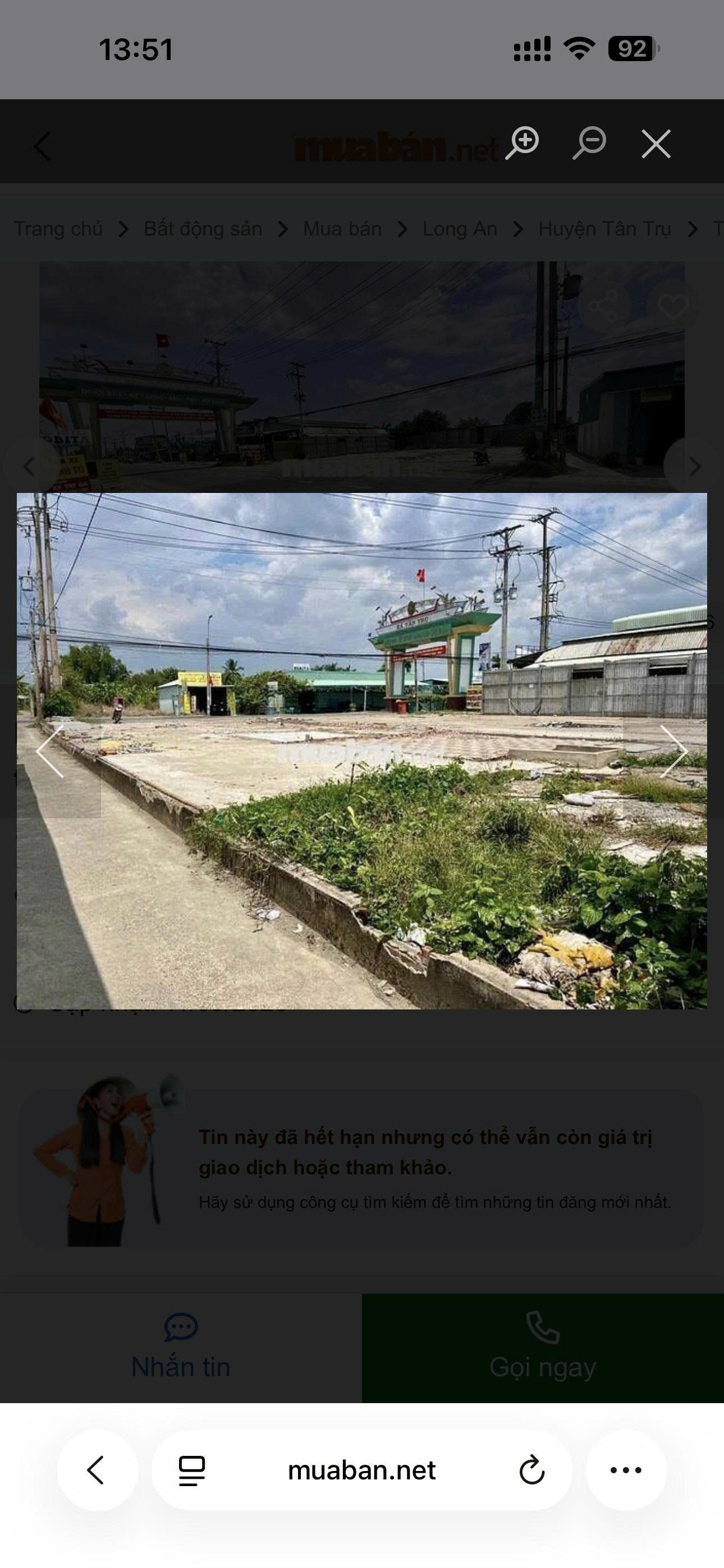 Đất nền tại Đường Tỉnh lộ 833, Thị trấn Tân Trụ, Huyện Tân Trụ, Long An. (Xã Tân Trụ, Tây Ninh mới) .với tổng diện tích 1862,92 m², giá bán 10,5 tỷ VND, là cơ hội lý tưởng cho các nhà đầu tư và doanh nhân: để ở và kinh doanh hoặc đầu tư lâu dài.