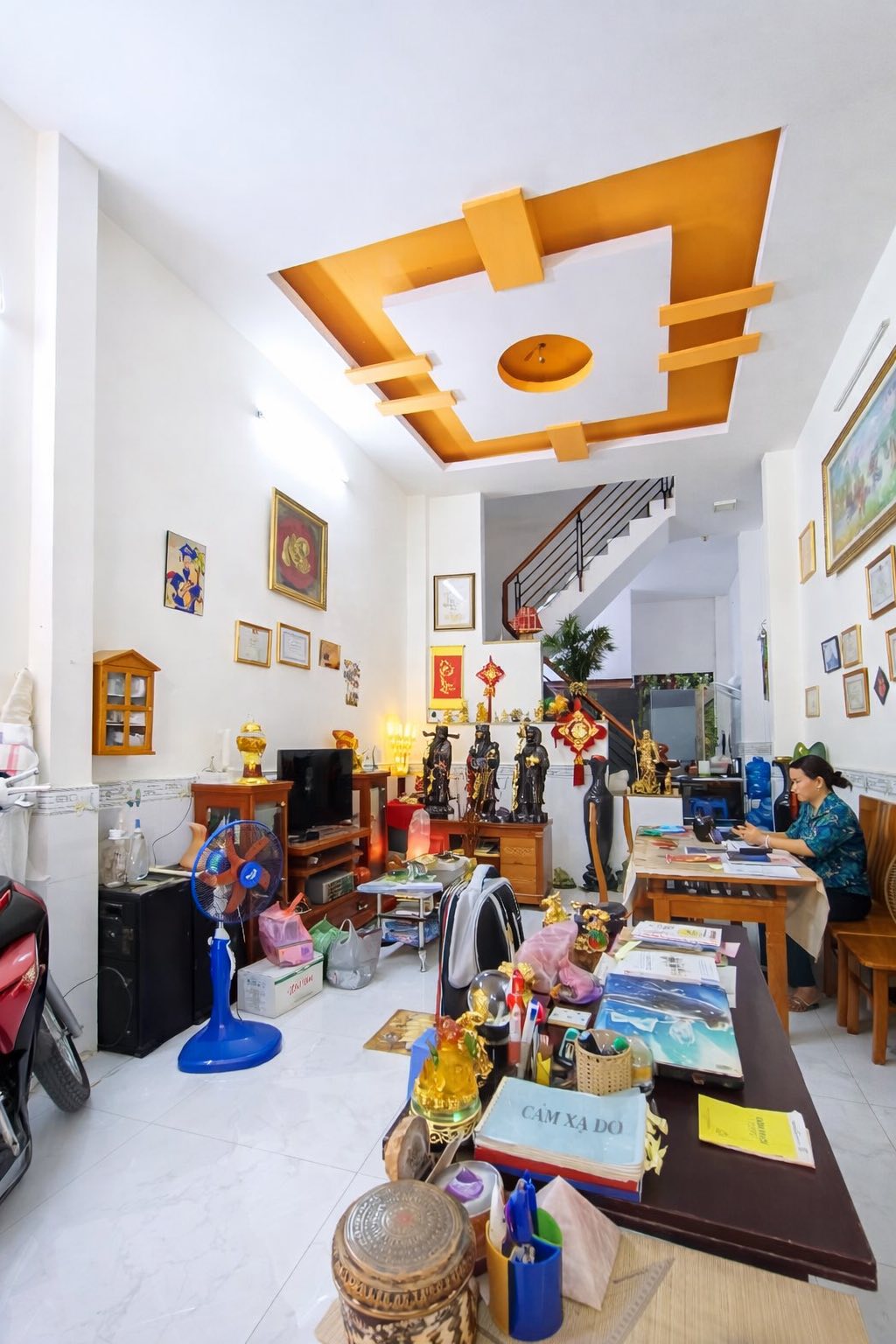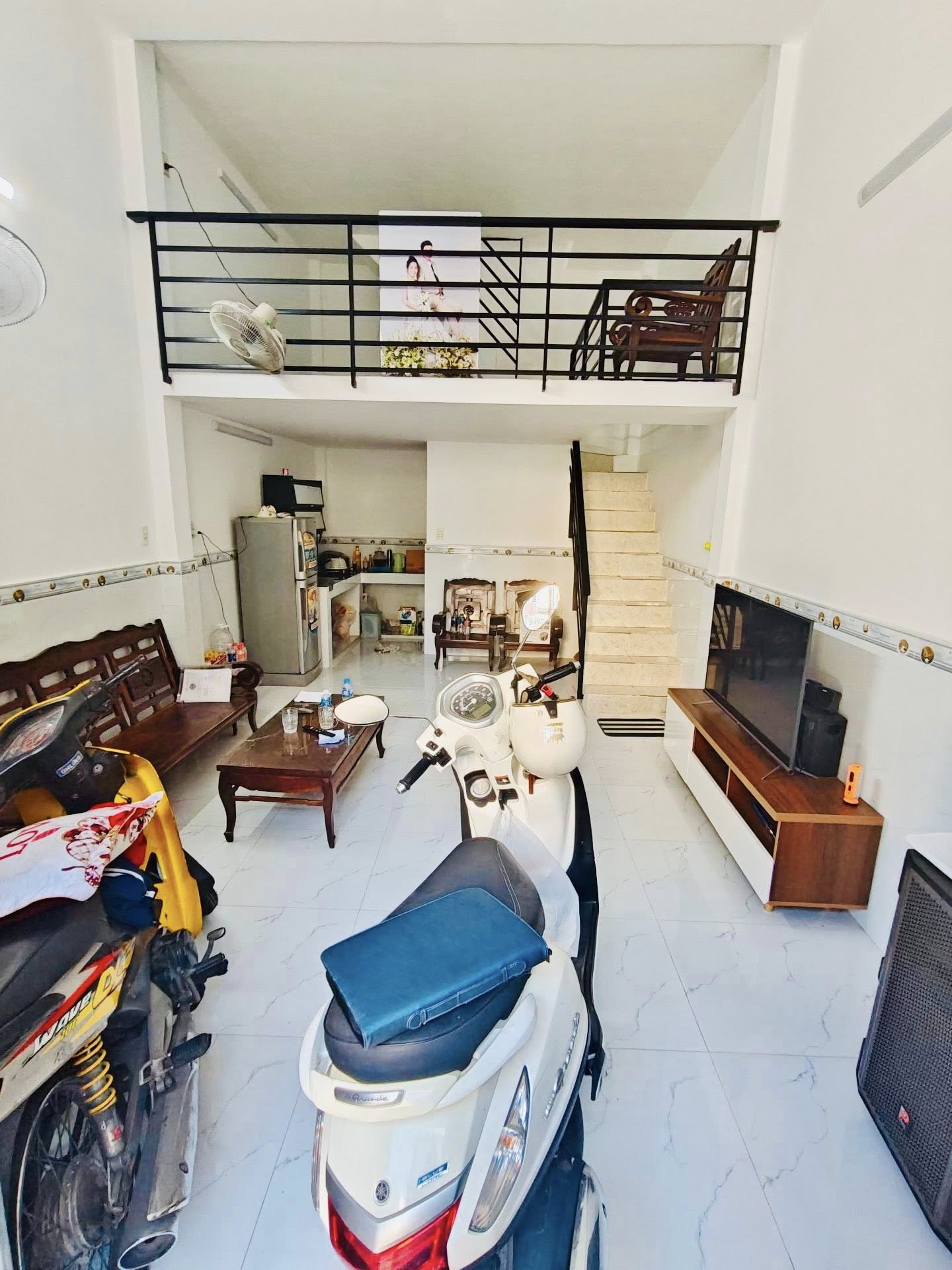 Nhà 2 tầng sân thượng, đầy đủ công năng gồm phòng khách, bếp, phòng ngủ, phòng thờ, sân phơi.