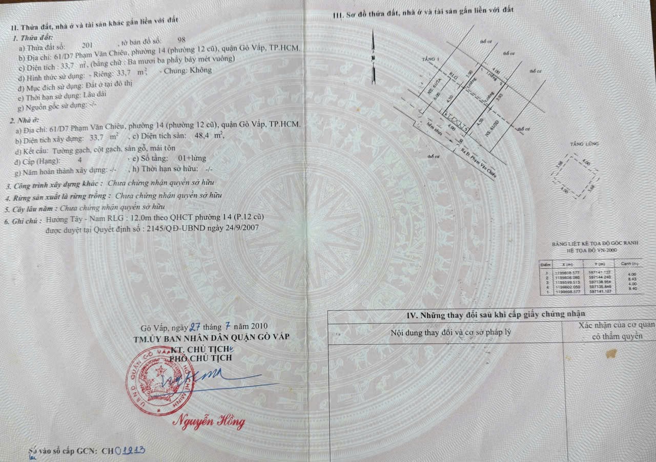 Nhà hẻm 49/54/8 Đường số 51, Phường 14, Gò Vấp, Hẻm 3m thông, 4x8,5m, Cn 33,7 m2, trệt 1 lầu, 2PN, 2WC, 3,75 tỷ TL