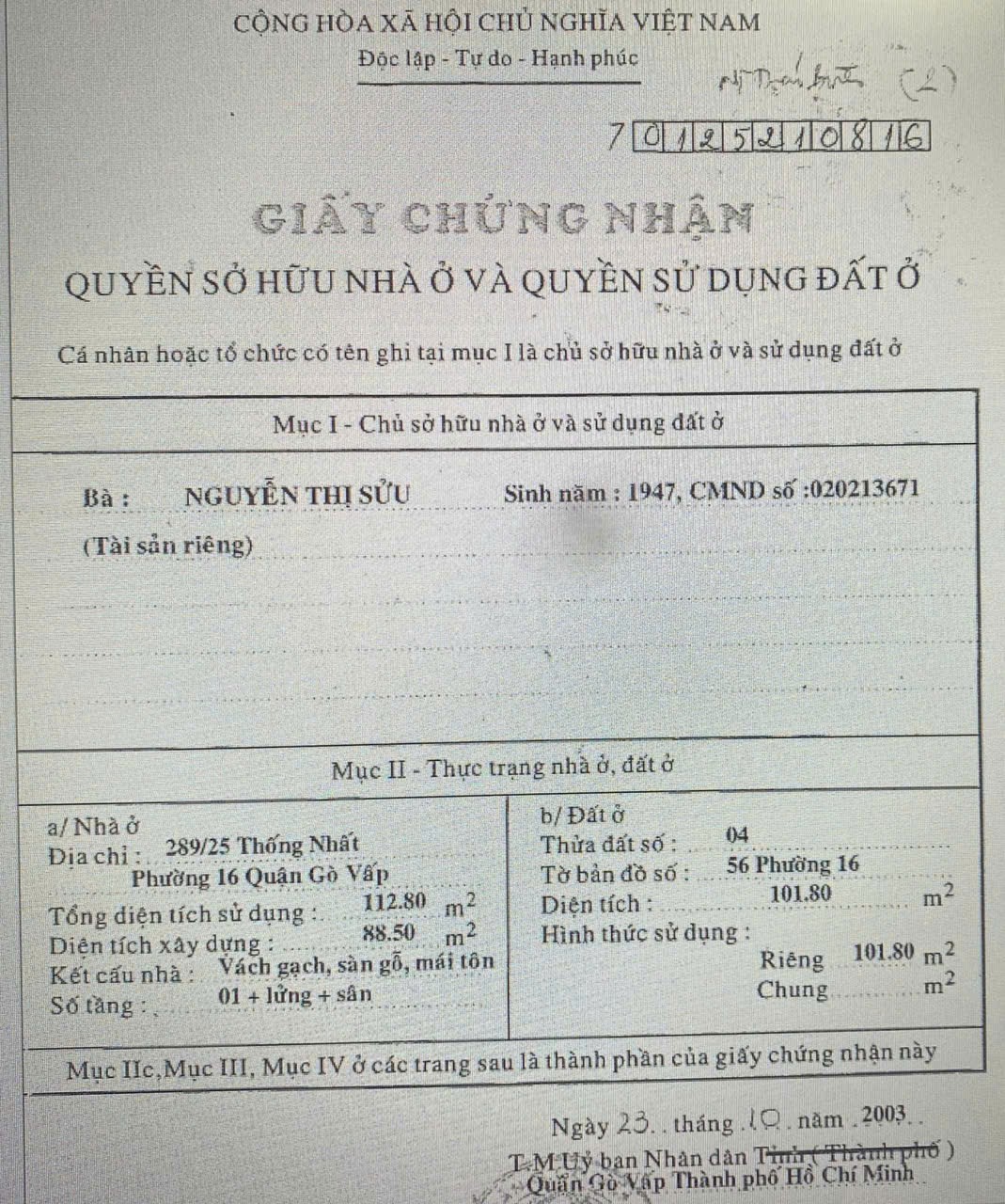 Nhà hẻm 511/31 Thống Nhất, Phường 16, Gò Vấp, Hẻm 3m, 3,3x27m, NH 5,9m, Cn 101,8 m2, trệt lửng, 7,254 tỷ TL