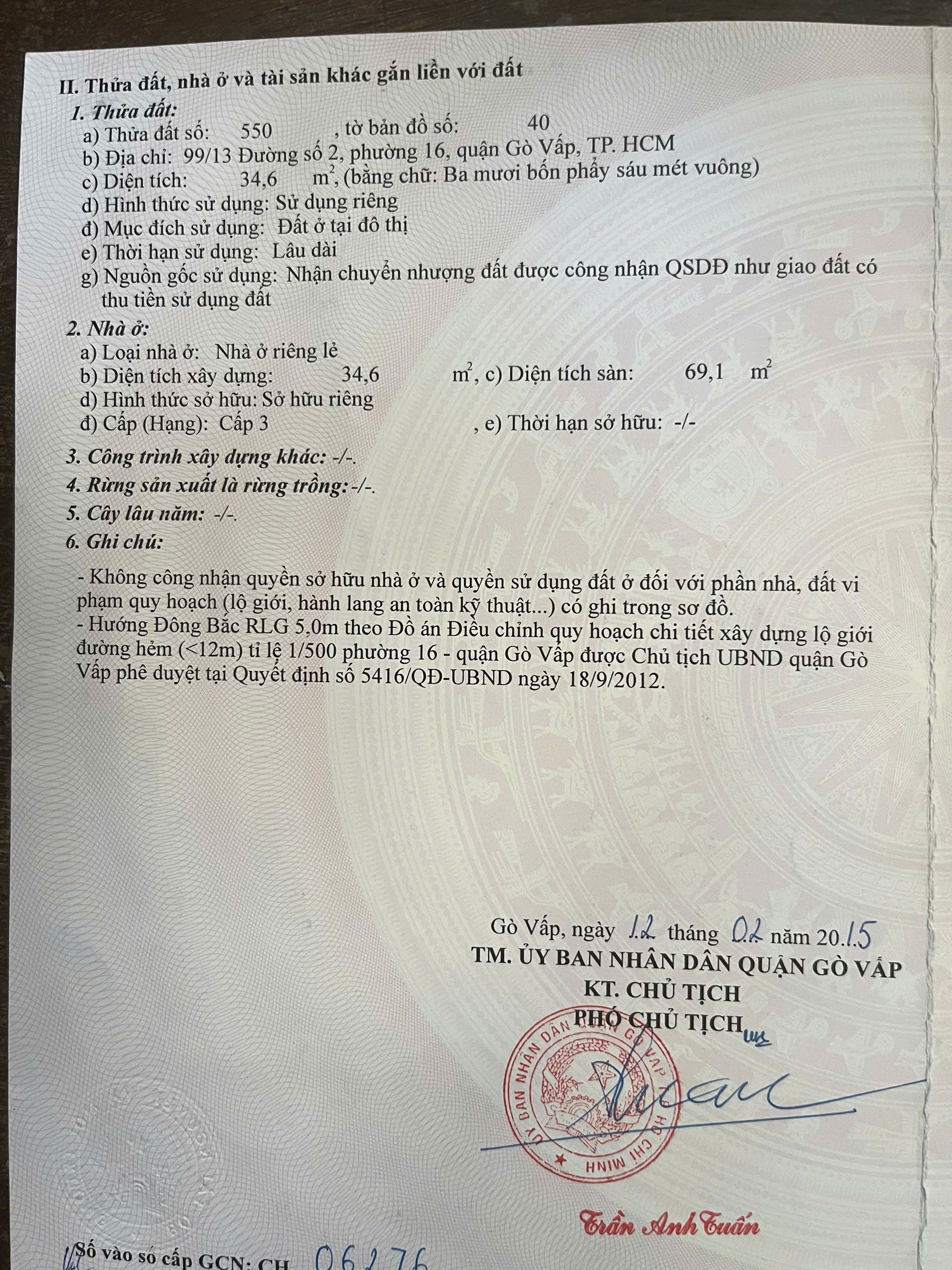 | DT Công nhận: 33 m2 | DT sàn: 69 m2 | ||||||