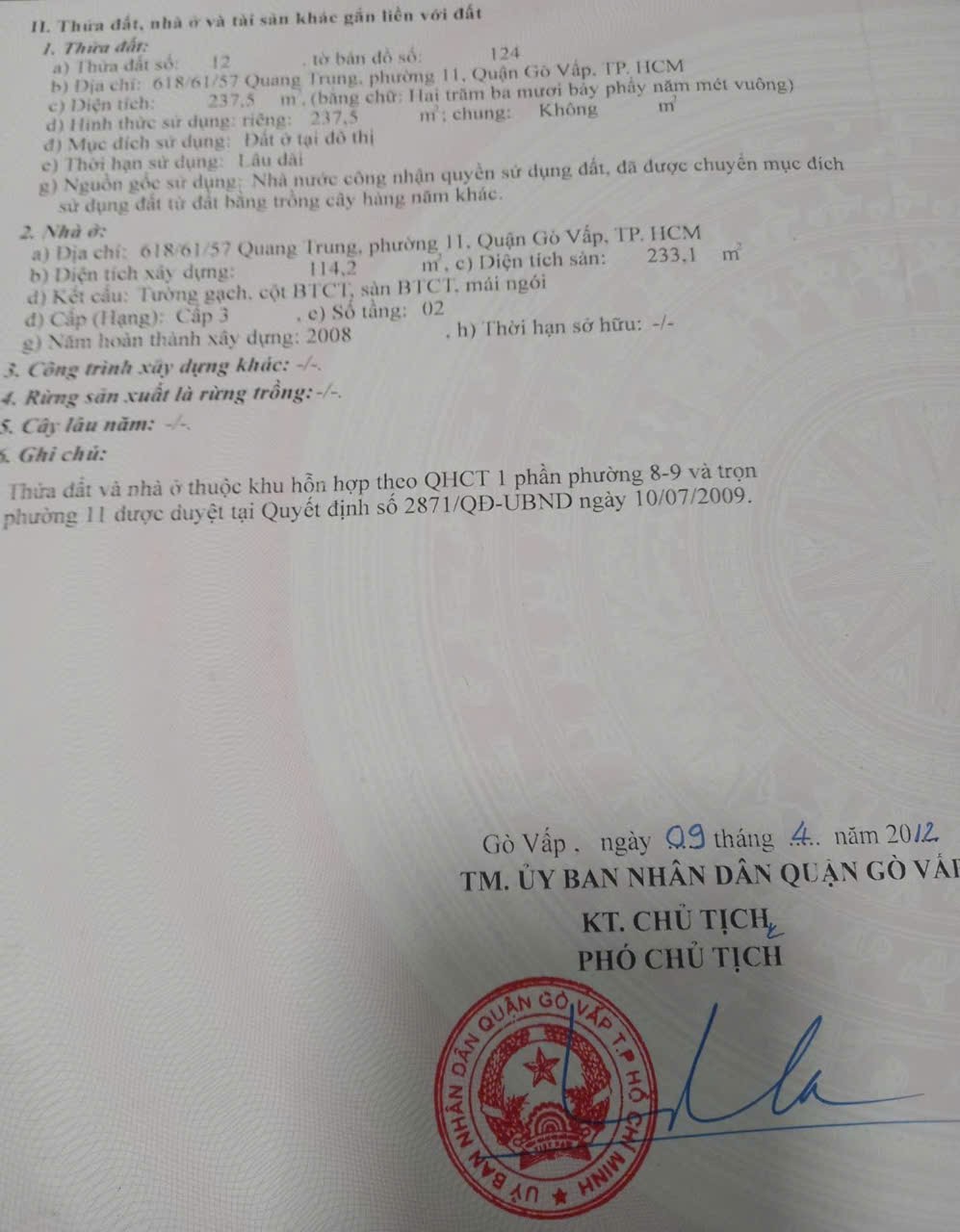Nhà hẻm 618/61/57 Quang Trung, Phường 11, Gò Vấp, Hẻm 4,5m thông, 9,1x30m, NH 13,3m, Cn 237,5 m2, trệt 1 lầu, 23 tỷ TL