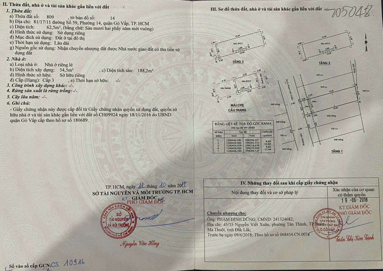 Nhà hẻm 81/17/11 Đường số 59, Phường 14, Gò Vấp, Hẻm 4,5m, 4x16m, Cn 62,5 m2, trệt 3 lầu, ST, 7PN, 7WC, Thu nhập 25tr/tháng, 7,95 tỷ TL