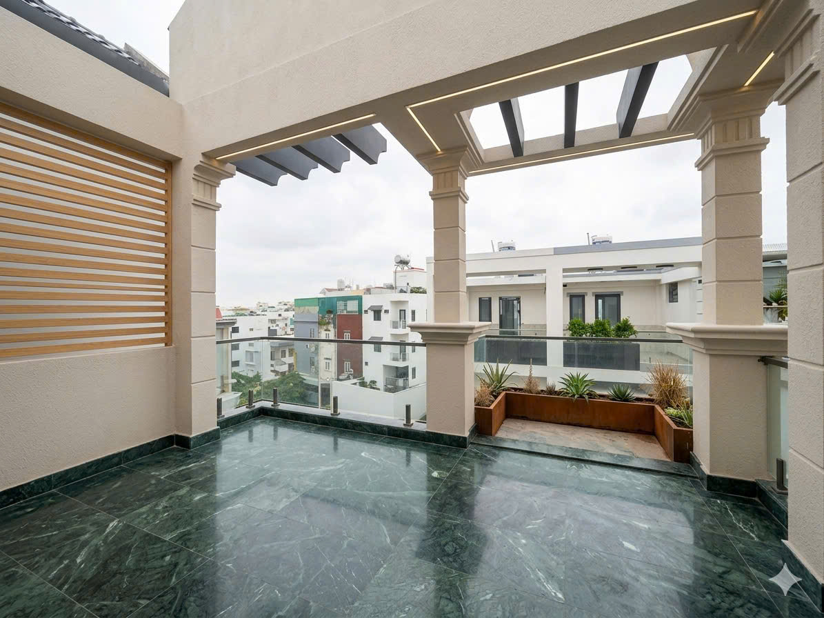 - Sân thượng sau làm phòng giặt, phơi đồ.