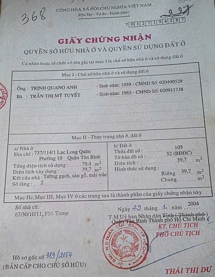 Nhà hẻm 737/114/1 Lạc Long Quân, Phường 10, Tân Bình, Hẻm 3,3m, 5,85x7,45m, Cn 39,7 m2, trệt 1 lầu, 4,9 tỷ TL