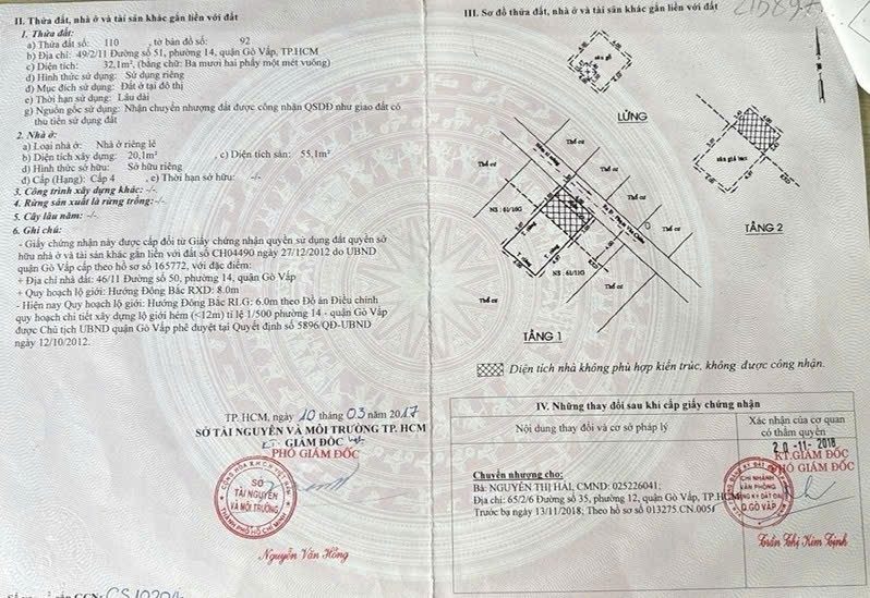 Nhà hẻm 49/2/11 Đường số 51, Phường 14, Gò Vấp, 4x8m, Cn 32,1 m2, trệt lửng 1 lầu, 3PN, 3WC, 4,2 tỷ TL