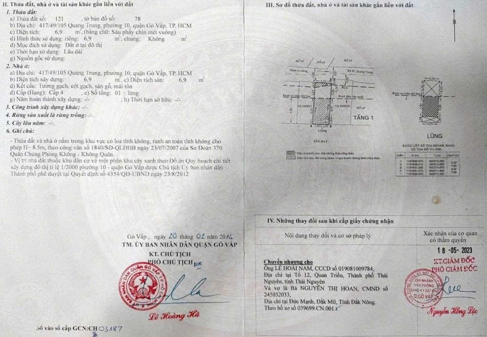 Nhà hẻm 417/49/105 Quang Trung, Phường 10, Gò Vấp, Hẻm 2,5m, 3x8m, trệt 2 lầu, 4PN, 2WC, 2,35 tỷ TL
