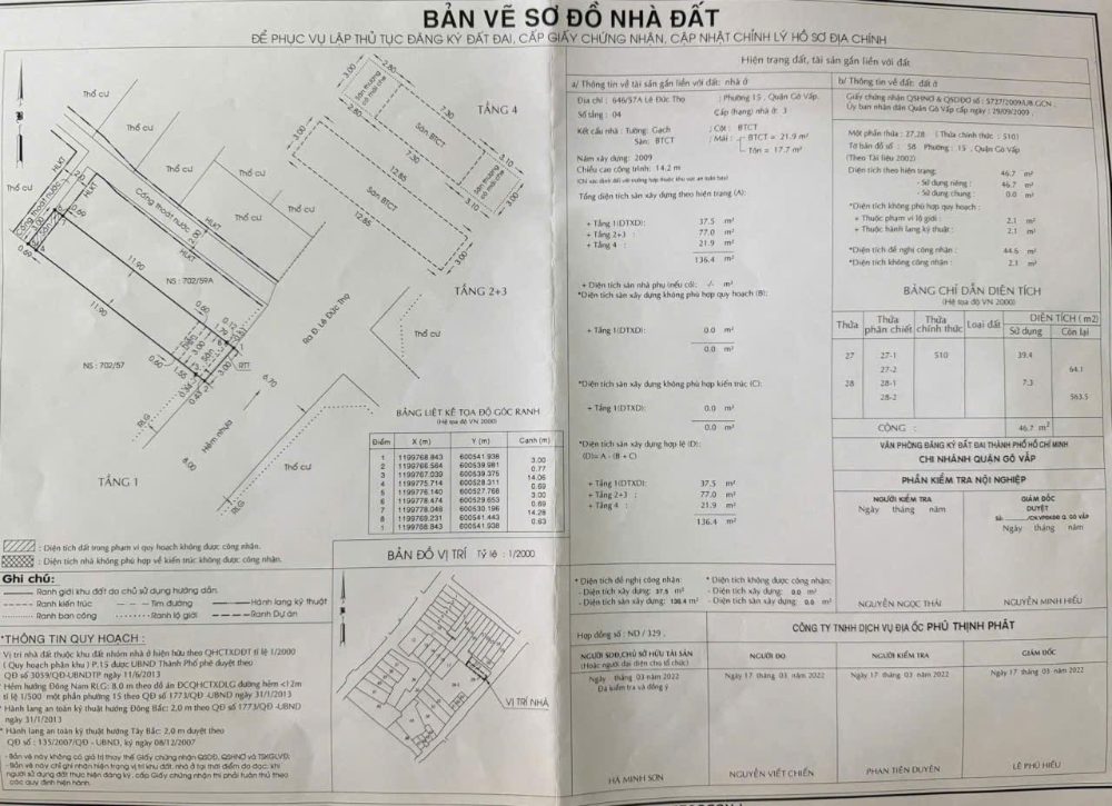 Nhà hẻm 702/59 Lê Đức Thọ, Phường 15, Gò Vấp, Hẻm 8m thông, 3x15,5m, Cn 46,7 m2, trệt 3 lầu, ST, 4PN, 3WC, 5,6 tỷ TL