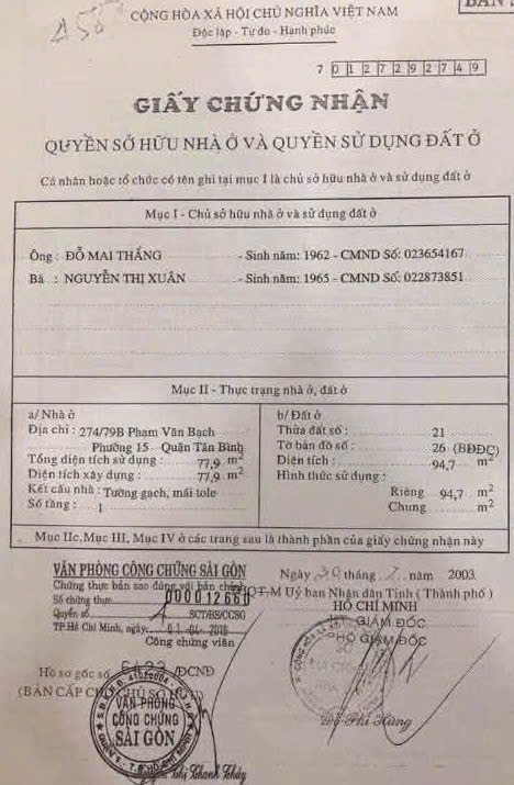 Nhà MT 331 Tân Sơn, Phường 15, Tân Bình, MT 30m, 4,1x23m, Cn 94,7 m2, Cấp 4, 13,5 tỷ TL