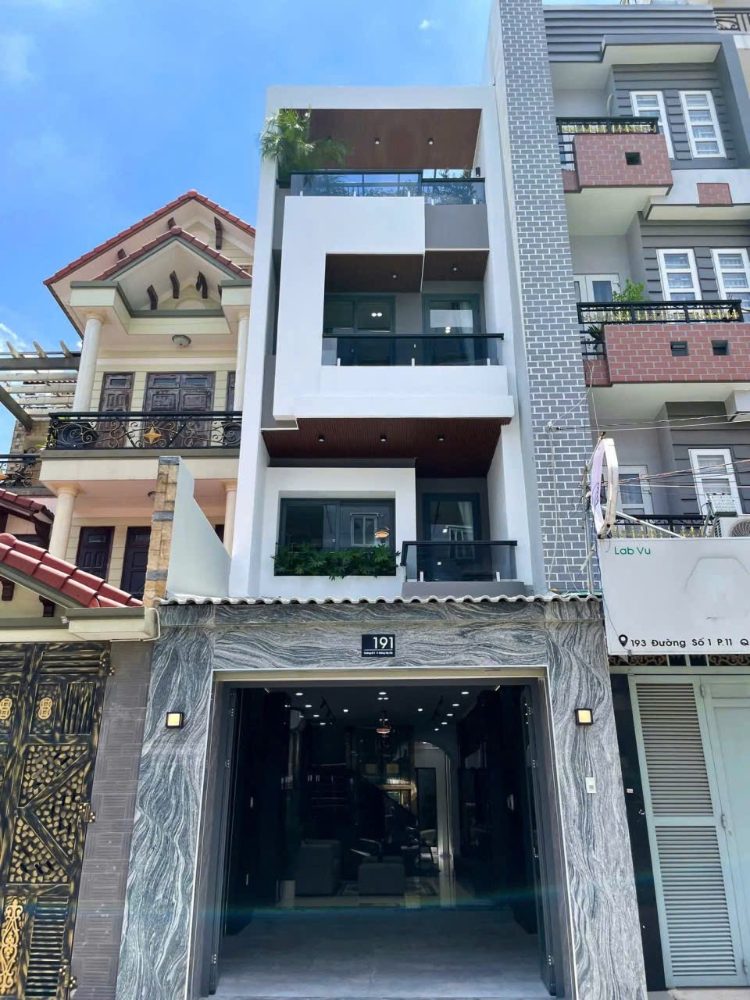Nhà MT 191 Đường số 1, Phường 11, Gò Vấp, MT 10m, 4x21,5m, Cn 86,1 m2, trệt 3 lầu, ST, 4PN, 5WC, Phòng Gym, Full nội thất, Thang máy, 15,3 tỷ TL