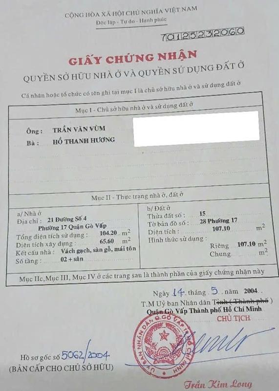 | Diện tích công nhận: 206 m2 | Diện tích sàn: m2 | ||||||